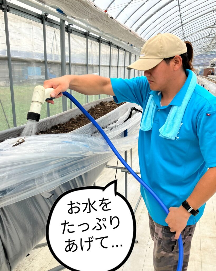 土入れをした棚に、まずはたっぷりお水をまいて。
